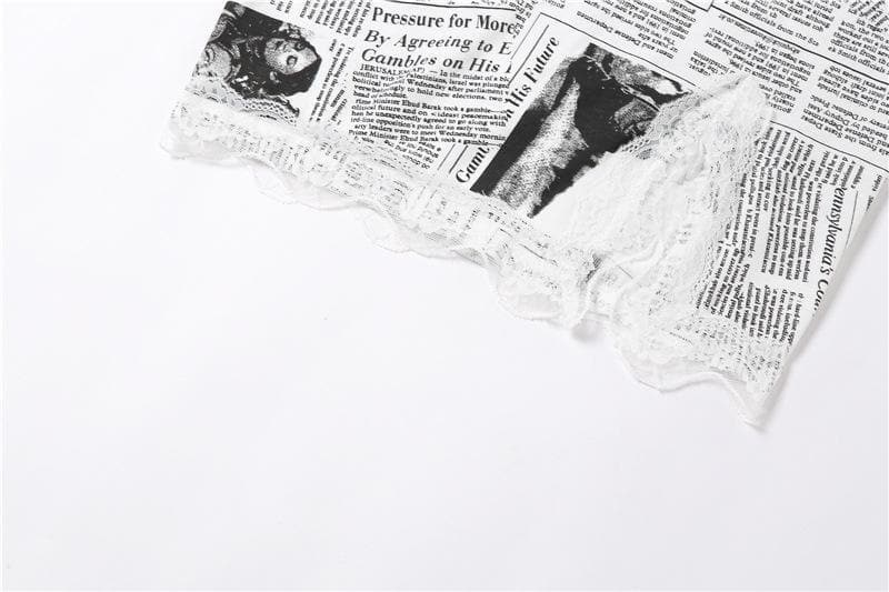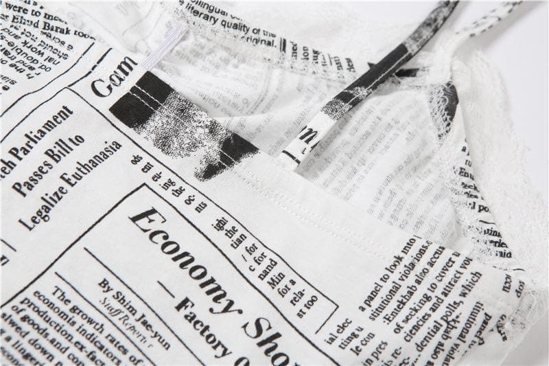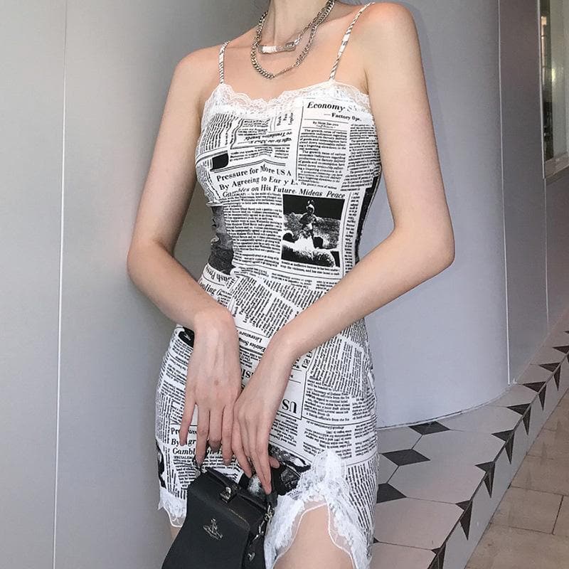 Hem lace newspaper print slit cami dressHem lace newspaper print slit cami dress